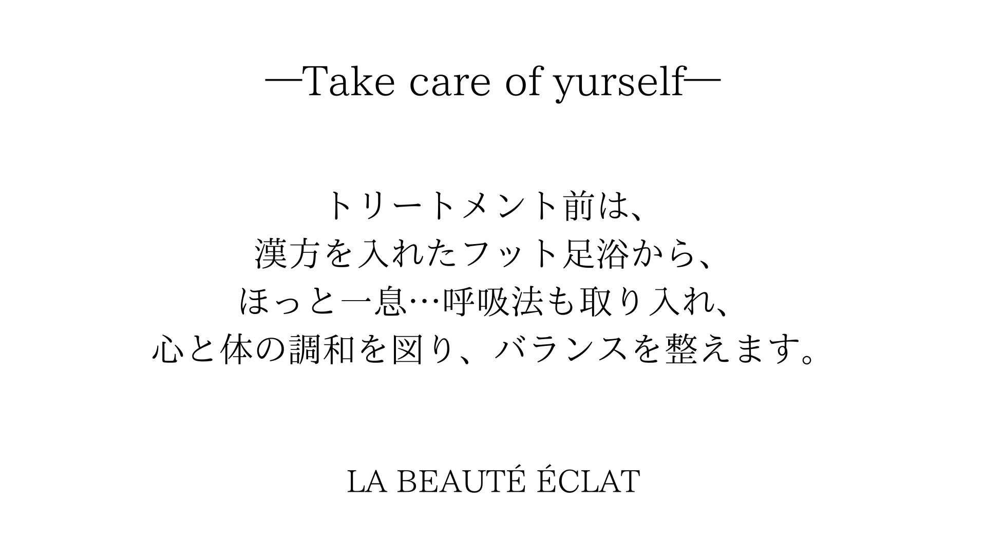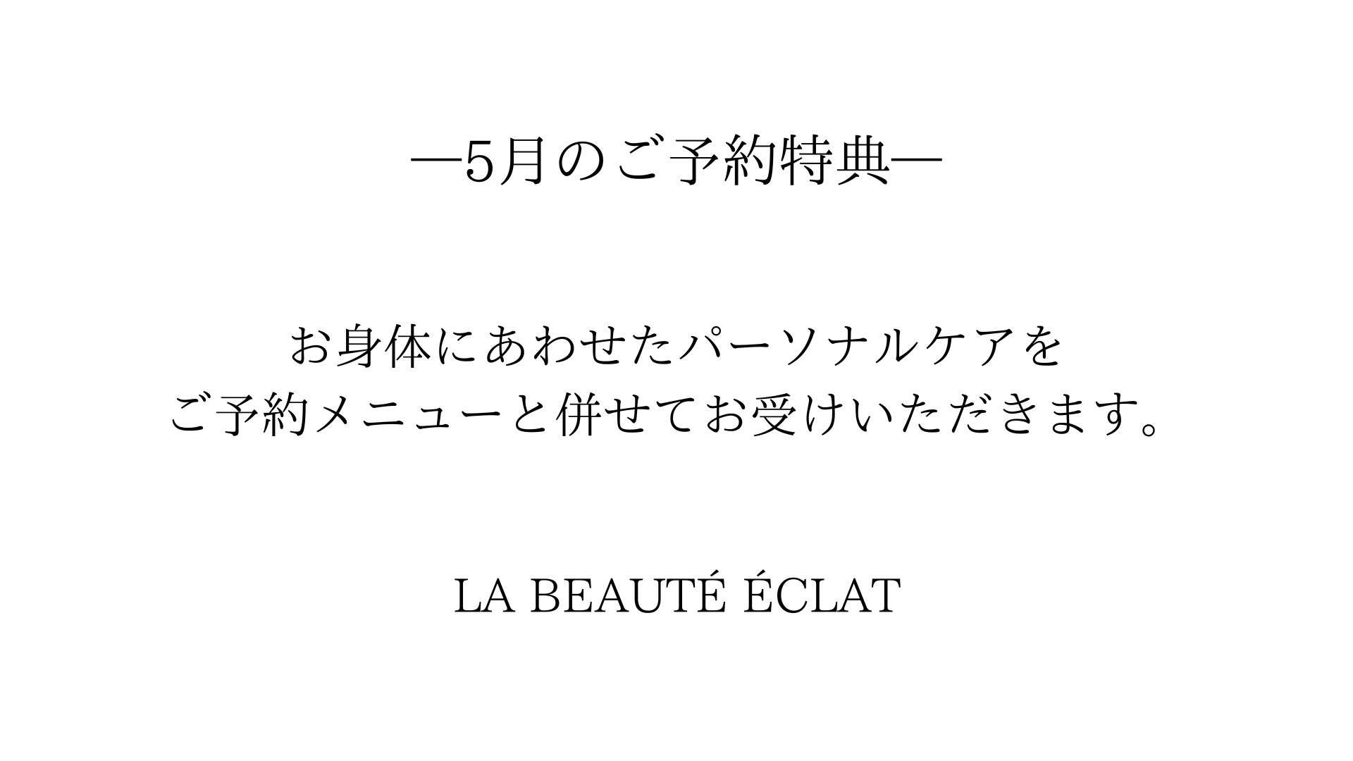 5月サロン定休日のお知らせ 2024/05/01 https://spa.ikyu.com/660332/?num=1 広々としたアットホームな店内にて満足度の高いサービスをゆったりとリラックスしながらご堪能いただけます。 オーナー兼エステティシャンは高い技術力を有しており、豊富な専門知識でもお客様の理想のコンディションをサポートいたします。明るくオープンな雰囲気のサロンで高クオリティーな仕上がりを楽しみたいとお考えのお客様は、ぜひ足をお運びください。 La beauté éclat(ラボーテエクラ)の予約なら[一休.comスパ] 無料カウンセリングはこちら お電話でも承っております。 090-5055-1444