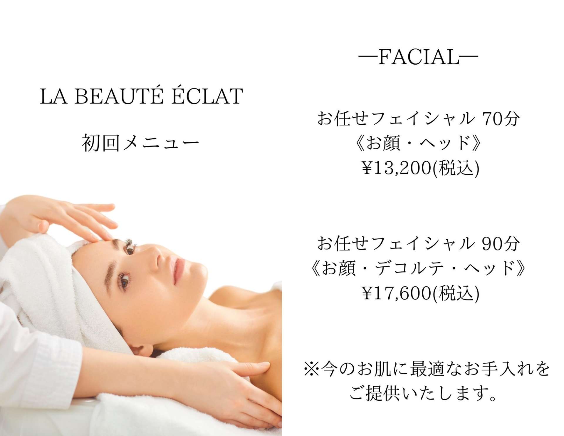 - お任せフェイシャル70分/90分
