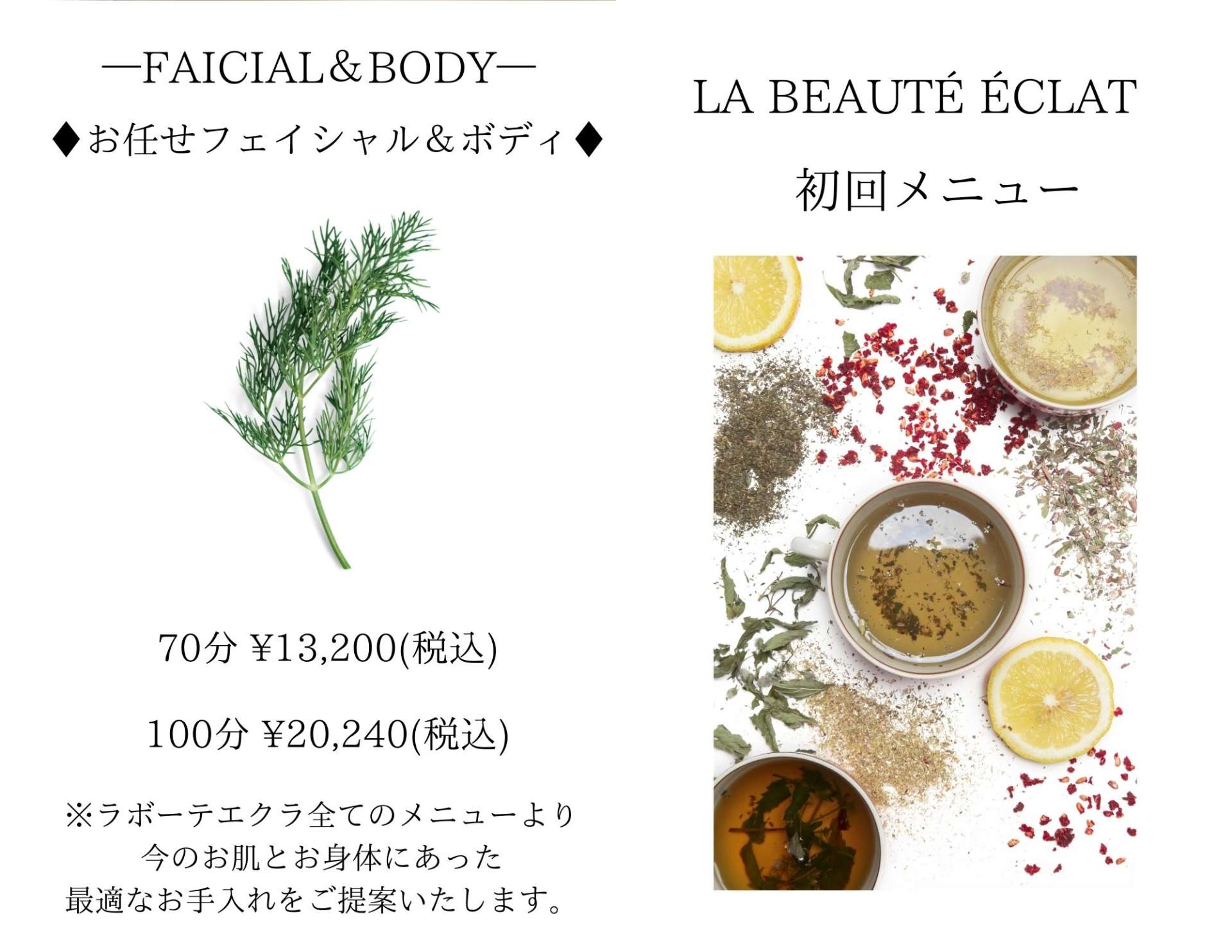 - お任せフェイシャル&ボディ70分/100分